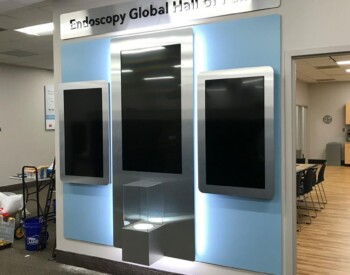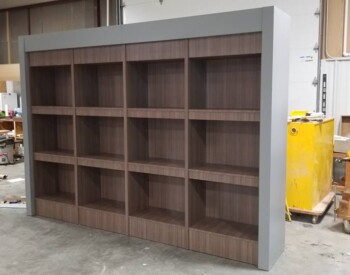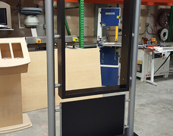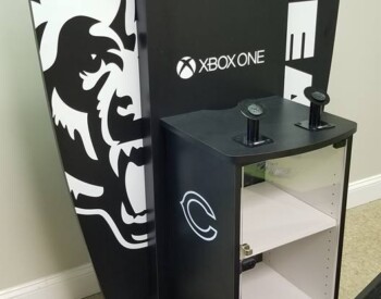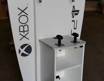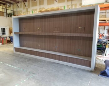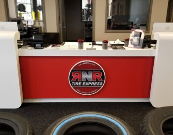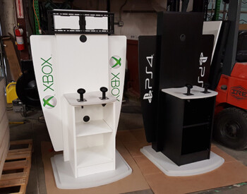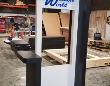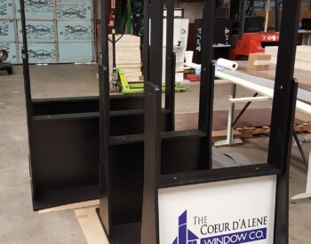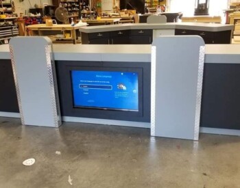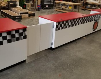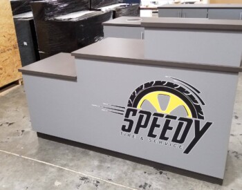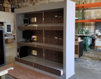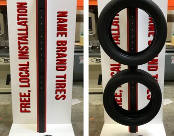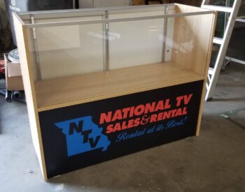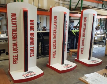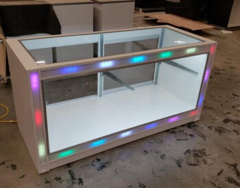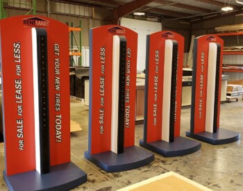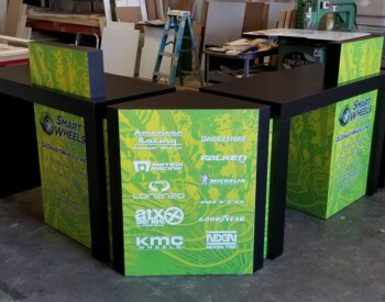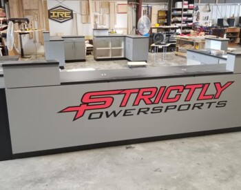 IRE, Inc. offers floor to ceiling display capability. Check out the 3D wall sign above these incredible cabinets with diamond plate accents.